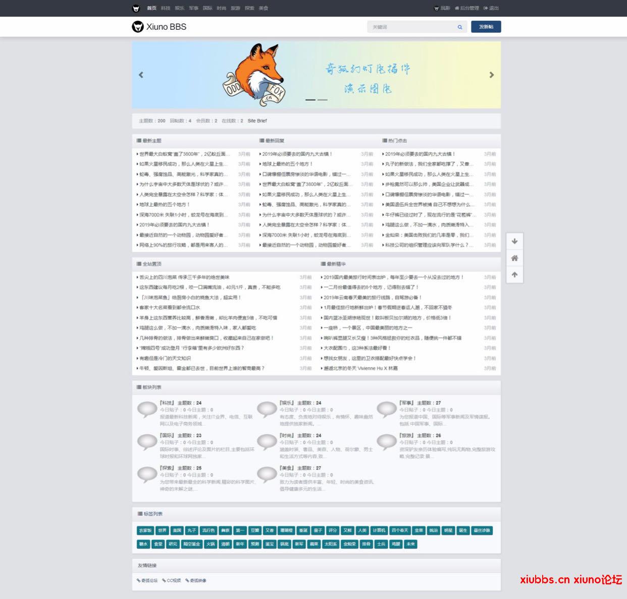 XIUNO模版首页轻论坛主题模板-宽屏套装